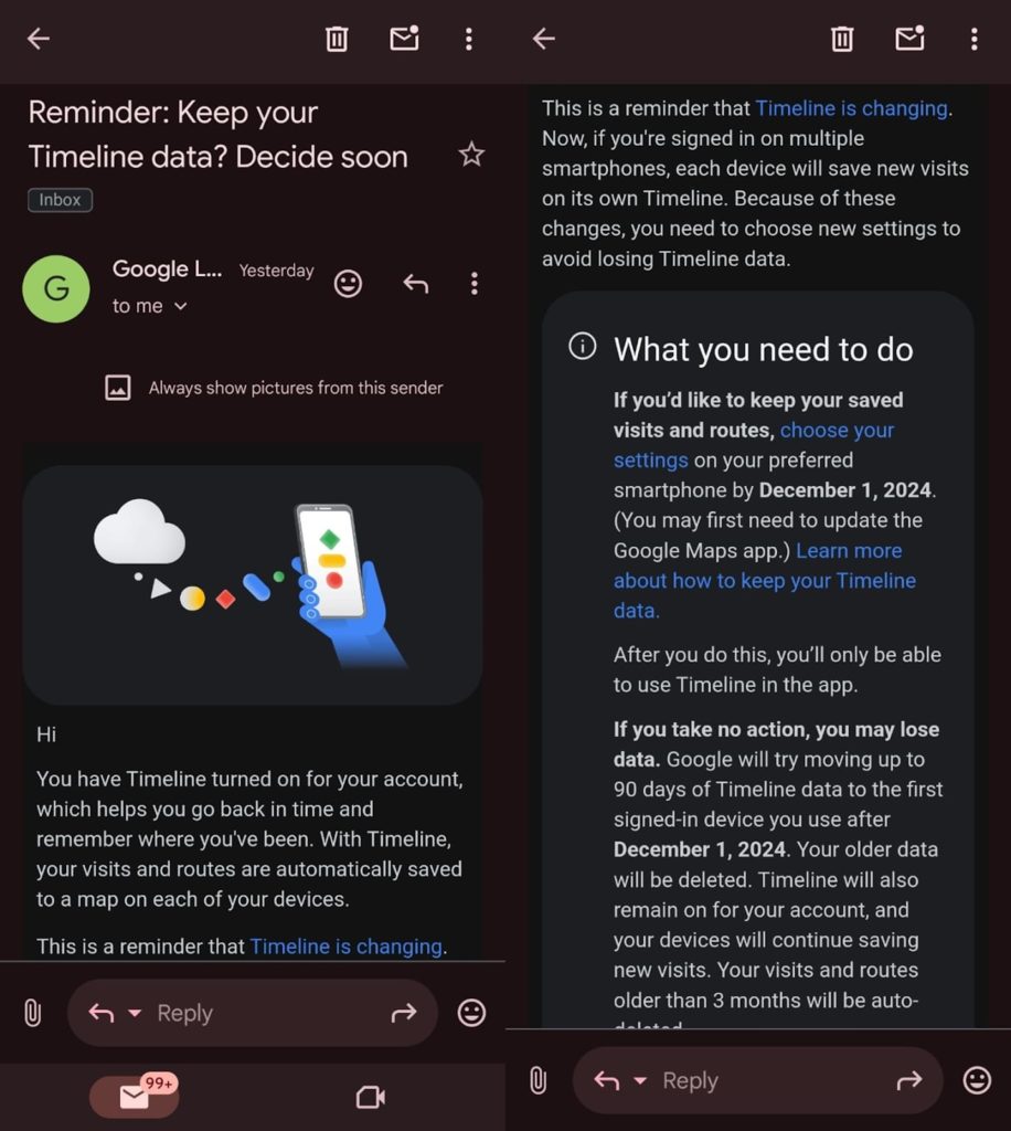 Not all users have received the updates yet, but many are getting emails that say they need to do something to stop their location history from being deleted. It’s worth mentioning that these emails are still going out, so the deadline for taking any action may vary for each person.